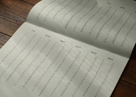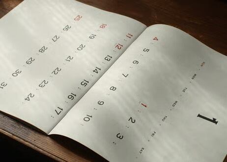ノートや封筒、便箋などTAKAYAMA LETTERPRESSの文房具同様、紙を見る目と印刷の技に裏打ちされた、シンプルで佇まいのとてもよいカレンダーです。
